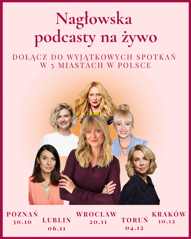 Jestem dziennikarką, autorką i producentką podcastów „Nagłowska Podcasty”, które tworzy od ponad 6 lat („Matka też człowiek”, „Mężczyzna tez człowiek”, „Nagłowska Na Głos”), mamą trójki dzieci, żoną.